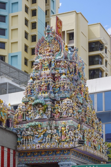 Singapore, Little India district is the main venue for public celebrations of important Hindu/Indian festivals such as Deepavali and Pongal. Pictured: Sri Veeramakaliamman Temple is a Hindu temple located in the middle of Little India in the southern part of Singapore., Credit:Fabio Mazzarella / Avalon