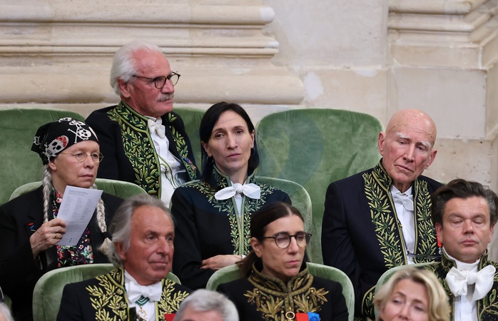Rétro - Décès du photographe Sebastião Salgado - Dominique Issermann, Yann Arthus-Bertrand, Catherine Meurrisse, Sebastiao Salgado, Bianca Li - Installation d'A.Leibovitz, en tant que membre associé étranger, à l'Académie des Beaux-Arts de Paris. Le 20 mars 2024 © Dominique Jacovides / Bestimage Intake ceremony of A.Leibovitz into the Académie des Beaux-Arts on March 20, 2024 in Paris, France