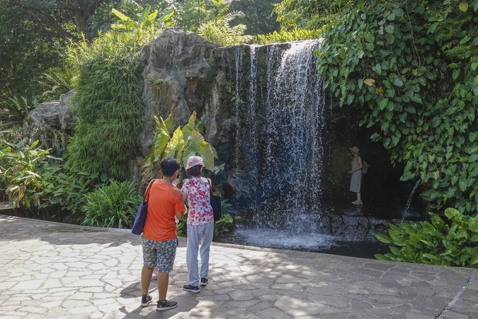 Singapore, waterfall at Singapore Botanic Gardens have been inscribed as a UNESCO World Heritage Site in 2015. The Gardens is the first and only tropical botanic garden on the UNESCO World Heritage List. Today, the Gardens is an important botanical institute., Credit:Fabio Mazzarella / Avalon