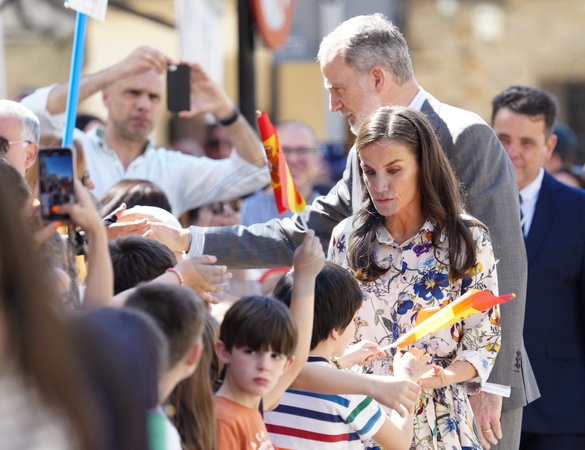 Bain de foule pour le roi Felipe VI et la reine Letizia d’Espagne lors de la visite de Guadalupe (Espagne)