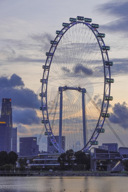 Singapore, Marina Bay, The Singapore Flyer is an observation wheel at the Downtown Core district of Singapore. Officially opened on 15 April 2008, it has 28 air-conditioned capsules, each able to accommodate 28 passengers, and incorporates a three-story terminal building., Credit:Fabio Mazzarella / Avalon