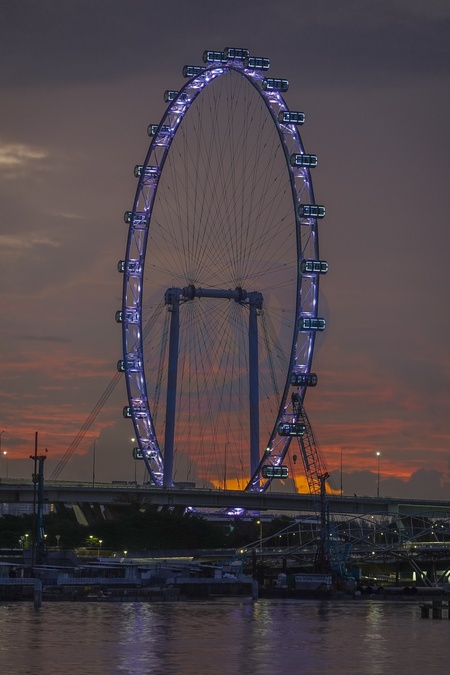 Singapore, Marina Bay, The Singapore Flyer is an observation wheel at the Downtown Core district of Singapore. Officially opened on 15 April 2008, it has 28 air-conditioned capsules, each able to accommodate 28 passengers, and incorporates a three-story terminal building., Credit:Fabio Mazzarella / Avalon