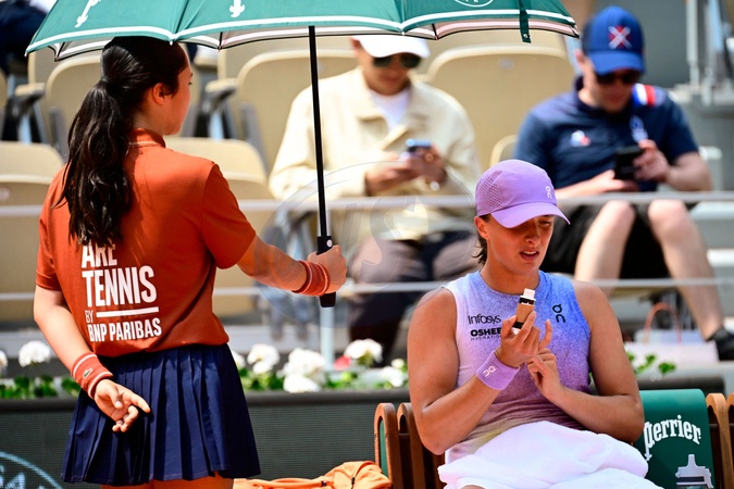 Iga Swiatek ( POL ) sits on her chair during the 2025 French Open at Roland Garros on Juin 03, 2025 in Paris, France. © Dante Badano/PSNewz/Bestimage