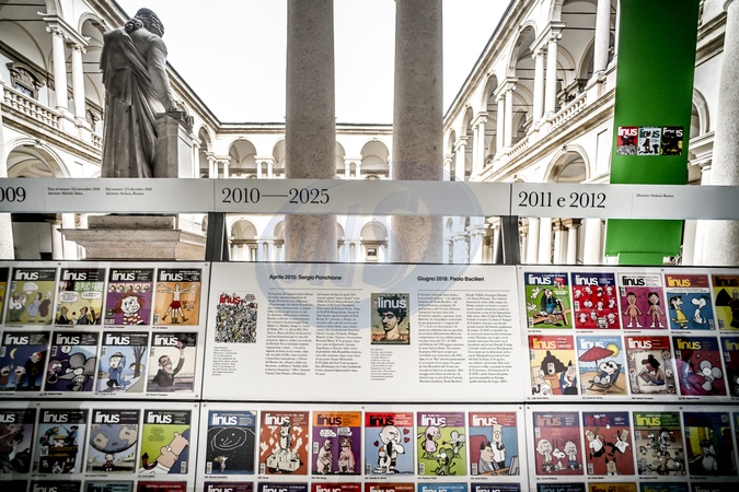 Courtyard of Honor of the Pinacoteca di Brera. Exhibition for Linus' 60th birthday and tribute to Pimpa for her 50th birthday. Milan, Italy 03 Jun 2025, Credit:AGF/Nicola Marfisi / Avalon