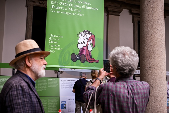 Courtyard of Honor of the Pinacoteca di Brera. Exhibition for Linus' 60th birthday and tribute to Pimpa for her 50th birthday. Milan, Italy 03 Jun 2025, Credit:AGF/Nicola Marfisi / Avalon