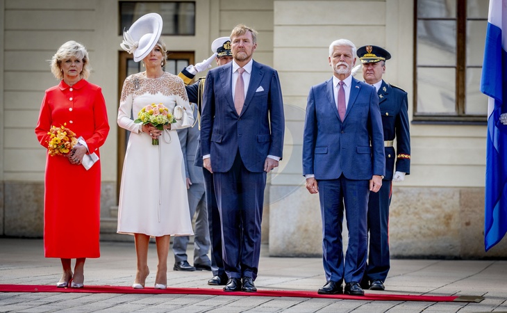 Praag, The Netherlands, 2025-06-04 09:34:15PRAGUE, 04-06-2025, Prague CastleKing Willem Alexander and Queen Máxima pay a state visit to the Czech Republic at the invitation of the President. PHOTO: NLBeeld/Patrick van EmstIn the photo: President Pavel and his wife Eva Pavlová welcome the Royal Couple at the Presidential Palace in Prague with an official welcome ceremony, followed by a tête-a-tête and a delegation meeting. The President and the King then give a short press statement., Credit:Avalon
