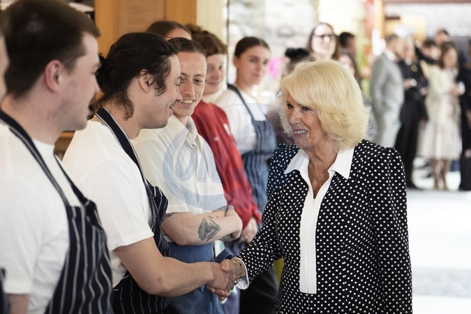 Queen Camilla meeting members of staff during a visit to the British Flowers Week 2025 exhibition, at the Garden Museum, London. The exhibition features six immersive floral installations celebrating local, seasonal, British-cut flowers. Picture date: Wednesday June 4, 2025. PA Photo. British Flowers Week champions the UK's cut flower industry, celebrating growers, wholesalers, and florists who work with British-grown flowers. The Garden Museum celebrates the art, history and design of British gardens and the stories of great gardeners., Credit:Jordan Pettitt / Avalon