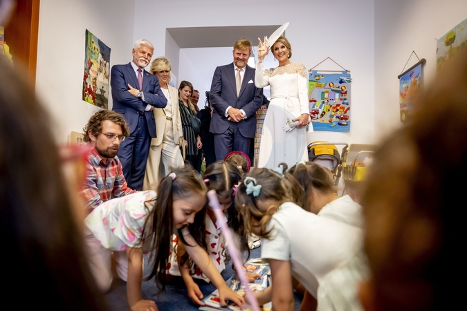 Praag, The Netherlands, 2025-06-04 14:30:44PRAGUE, 04-06-2025, People in NeedKing Willem Alexander and Queen Máxima pay a state visit to the Czech Republic at the invitation of the President. PHOTO: NLBeeld/POOL/Robin UtechtIn the photo: The Royal Couple and the presidential couple visit a branch of People in Need, an NGO that is active in more than forty countries with programs to promote social integration., Credit:Avalon