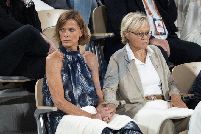 Muriel Robin et sa femme Anne Le Nen dans les tribunes lors des Internationaux de France de Tennis de Roland Garros 2025, à Paris, France, le 4 juin 2025. © Jacovides-Moreau/Bestimage Celebs in the stands during the 2025 French Open Tennis Championships at Roland Garros, in Paris, France, on June 4th, 2025. © Jacovides-Moreau/Bestimage