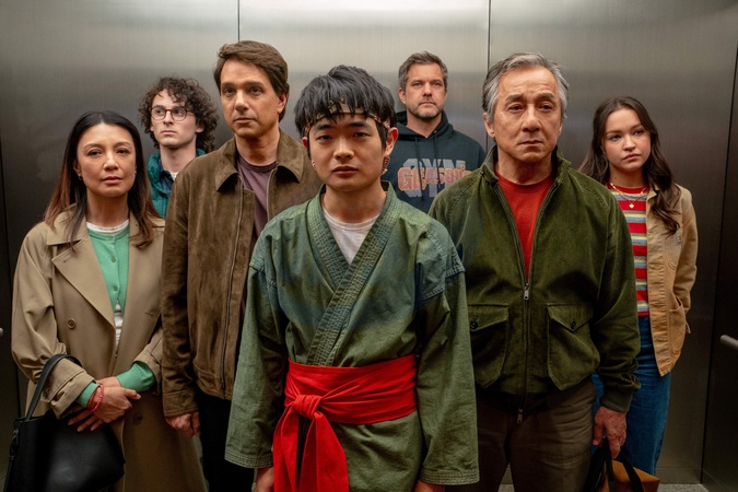 Jackie Chan, Ralph Macchio, Ben Wang, Sadie Stanley, Joshua Jackson, Ming Na Wen, "Karate Kid: Legends" (2025), Credit:Jonathan Wenk/Sony Pictures / Avalon