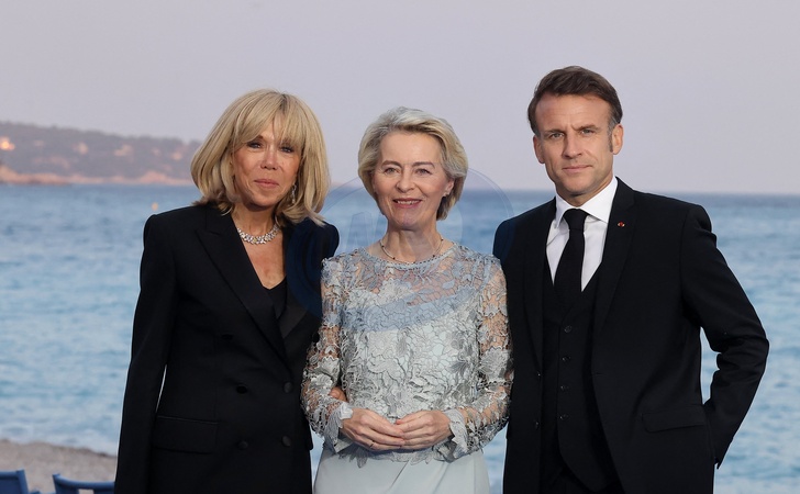 Brigitte Macron, Ursula von der Leyen, présidente de la commission européenne, le président Emmanuel Macron avant le dîner de la conférence des Nations Unies sur l'Océan (UNOC3) à Nice le 8 juin 2025 © Dominique Jacovides / Bestimage Dinner for the United Nations Ocean Conference (UNOC3) in Nice on 8 June 2025