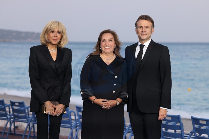 Le président Emmanuel Macron, sa femme Brigitte Macron, guest avant le dîner de la conférence des Nations Unies sur l'Océan (UNOC3) à Nice le 8 juin 2025 © Dominique Jacovides / Bestimage Dinner for the United Nations Ocean Conference (UNOC3) in Nice on 8 June 2025