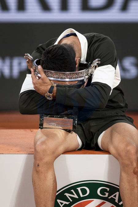 Carlos Alcaraz - Carlos Alcaraz remporte les internationaux de France de Tennis de Roland Garros 2025 face à Jannik Sinner sur le score de (4-6, 6-7, 6-4, 7-6, 7-6), au terme de la plus longue finale de l'histoire du tournoi du Grand Chelem parisien, Paris le 8 juin 2025. © Cyril Moreau/Bestimage Carlos Alcaraz won the French Open at Roland Garros 2025 against Jannik Sinner with a score of (4-6, 6-7, 6-4, 7-6, 7-6), at the end of the longest final in the history of the Parisian Grand Slam tournament, in Paris on June 8, 2025.