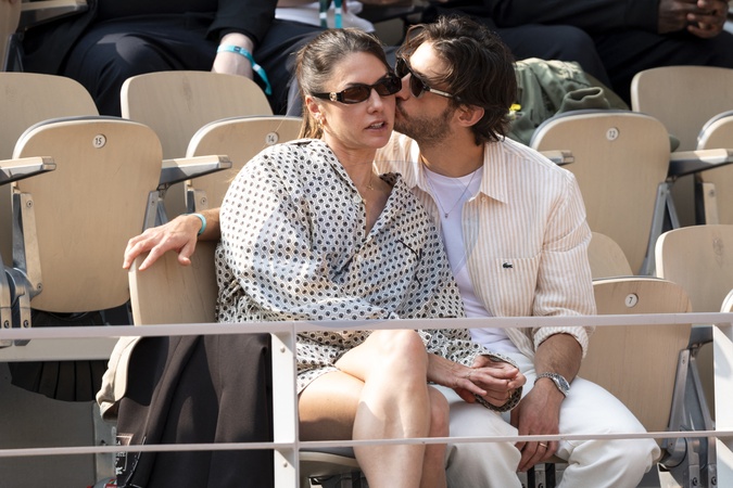 Pierre Niney, sa compagne Natasha Andrews en tribunes lors de la finale messieurs des Internationaux de France de Tennis de Roland Garros 2025 (jour 15), à Paris, France, le 8 juin 2025. © Cyril Moreau/Bestimage Celebs in the stands during the 2025 French Open Tennis Championships Men's Final at Roland Garros (Day 15), in Paris, France, on June 8th, 2025. © Cyril Moreau/Bestimage