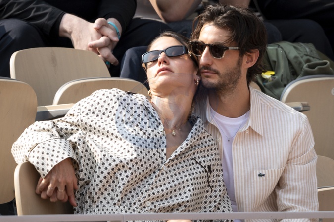 Pierre Niney, sa compagne Natasha Andrews en tribunes lors de la finale messieurs des Internationaux de France de Tennis de Roland Garros 2025 (jour 15), à Paris, France, le 8 juin 2025. © Cyril Moreau/Bestimage Celebs in the stands during the 2025 French Open Tennis Championships Men's Final at Roland Garros (Day 15), in Paris, France, on June 8th, 2025. © Cyril Moreau/Bestimage