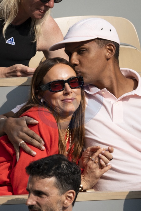 Stromae et sa femme Coralie Barbier en tribunes lors de la finale messieurs des Internationaux de France de Tennis de Roland Garros 2025 (jour 15), à Paris, France, le 8 juin 2025. © Cyril Moreau/Bestimage Celebs in the stands during the 2025 French Open Tennis Championships Men's Final at Roland Garros (Day 15), in Paris, France, on June 8th, 2025. © Cyril Moreau/Bestimage