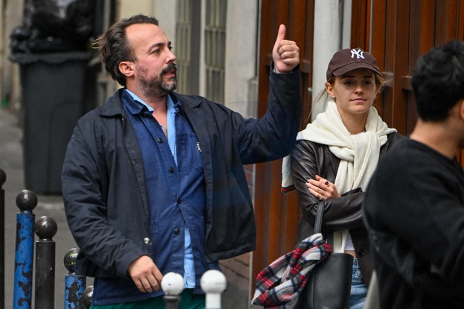 Exclusif - Emma Watson se promène avec un mystérieux inconnu dans les rues de Paris, France, le 8 juin 2025. © Yehiel Chekroune/bestimage Exclusive - Emma Watson walks with a mysterious stranger through the streets of Paris, France, on June 8, 2025. © Yehiel Chekroune/bestimage
