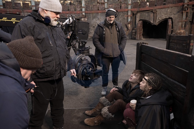 Writer-director Dean DeBlois, Mason Thames, Nico Parker , "How to Train Your Dragon" (2025), Credit:Helen Sloane/Universal Pictures / Avalon