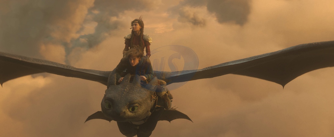 (from top) Astrid (Nico Parker), Hiccup (Mason Thames) and Night Fury dragon, Toothless "How to Train Your Dragon" (2025), Credit:Universal Pictures / Avalon