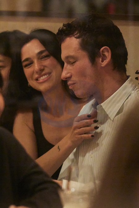 Exclusif - Prix Spécial - No Web - La chanteuse Dua Lipa et son nouveau fiancé l'acteur Callum Turner ont dîné en amoureux au restaurant "Parcelles" dans le quartier du Marais à Paris