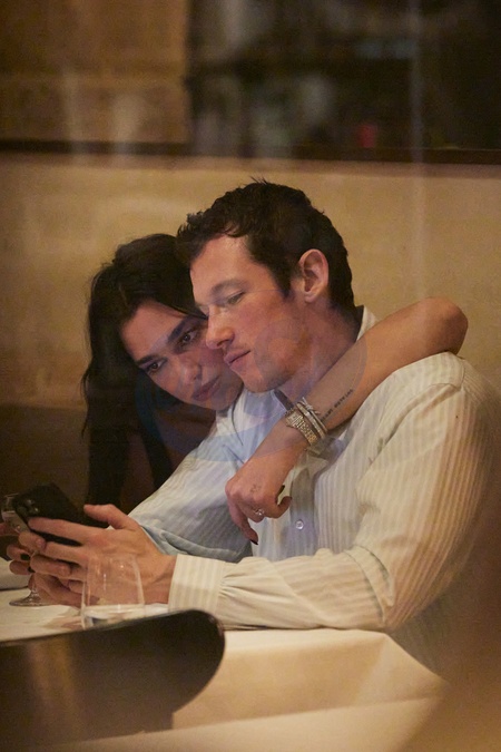 Exclusif - Prix Spécial - No Web - La chanteuse Dua Lipa et son nouveau fiancé l'acteur Callum Turner ont dîné en amoureux au restaurant "Parcelles" dans le quartier du Marais à Paris