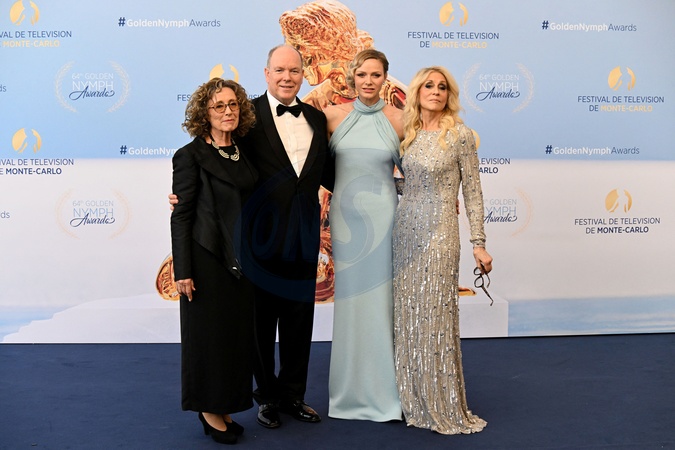 No Tabloïds - Mireille Dumas, le prince Albert II de Monaco, la princesse Charlene et Judith Light - Photocall de la soirée de clôture du 64ème Festival de télévision de Monte-Carlo le 17 juin 2025 © Bruno Bebert / Bestimage No Tabloïds - No Mail online - Only for OK, Hello, Grazia Photocall for the closing night of the 64th Monte-Carlo Television Festival on 17 June 2025