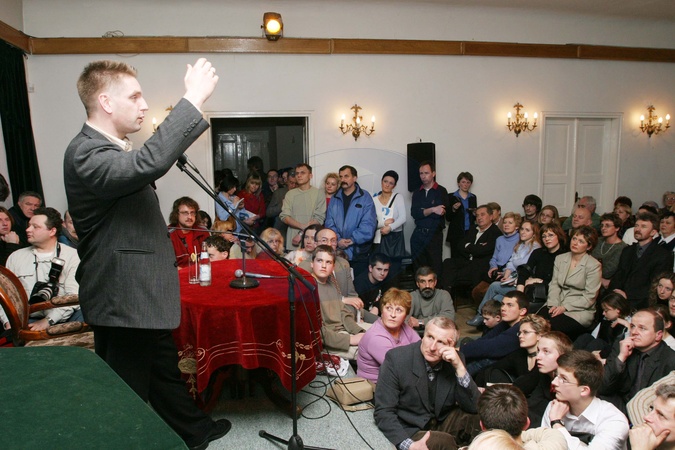 Tomasz Lis podpisuje swoja ksiazke "Jaka Polska".Kielce
