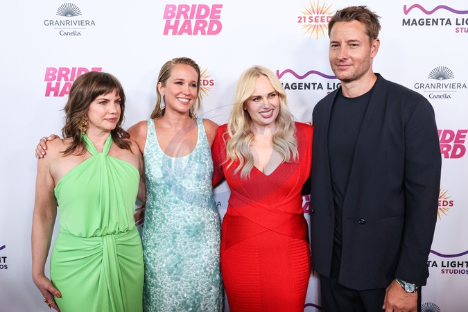 LOS ANGELES, CALIFORNIA, USA - JUNE 18: American actress Anna Chlumsky, American actress, model, and singer Anna Camp, Australian actress, producer, singer, and writer Rebel Wilson and American actor, producer, director, and writer Justin Hartley arrive at the Los Angeles Premiere Of Magenta Light Studios' 'Bride Hard' held at the DGA Theater Complex at The Directors Guild of America on June 18, 2025 in Los Angeles, California, United States., Credit:Xavier Collin / Avalon