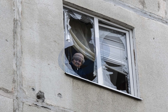 Woman at her window after a Russian attack in Kharkiv, Ukraine, 04/11/2024. © Nicolas Dykmas/Bestimage
