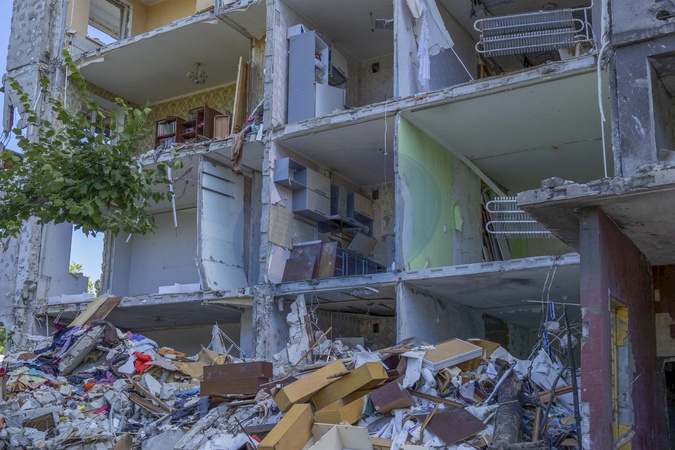 Shelled building, Kharkiv, Ukraine, 11/08/2024. © Nicolas Dykmas/Bestimage
