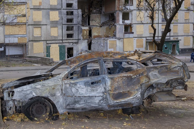 Shelled building and car, Kharkiv, Ukraine, 01/12/2024. © Nicolas Dykmas/Bestimage