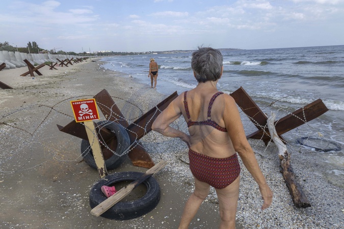 Woman taking a walk on the forbidden side of the beach. Odesa, Ukraine, 27/08/2024. © Nicolas Dykmas/Bestimage