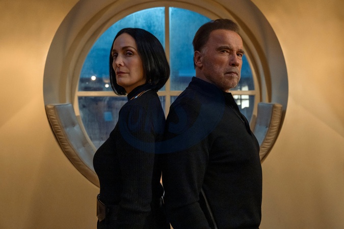Carrie-Anne Moss, Arnold Schwarzenegger, "Fubar" Season 2 (2025), Credit:Christos Kalohoridis/Netflix / Avalon