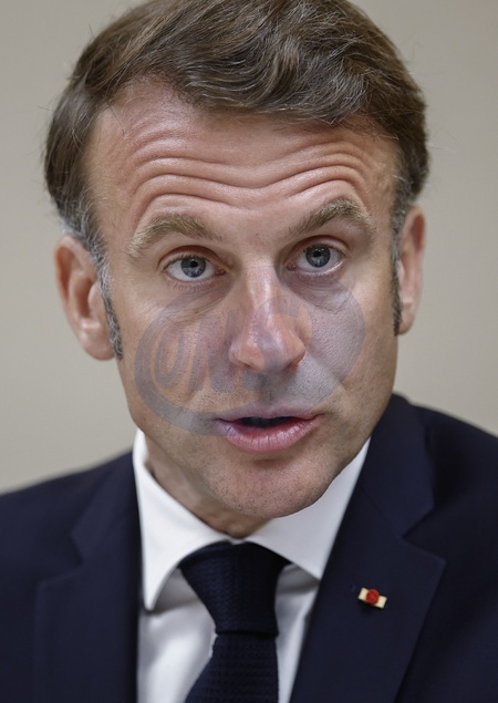 French President Emmanuel Macron flanked by French Presidency General Secretary Emmanuel Moulin and France's General Fabien Mandon attends a national security meeting on the crisis between Israel and Iran in the Jupiter room at the Elysee Palace in Paris, France, June 22, 2025. © Benoit Tessier/Pool/Bestimage