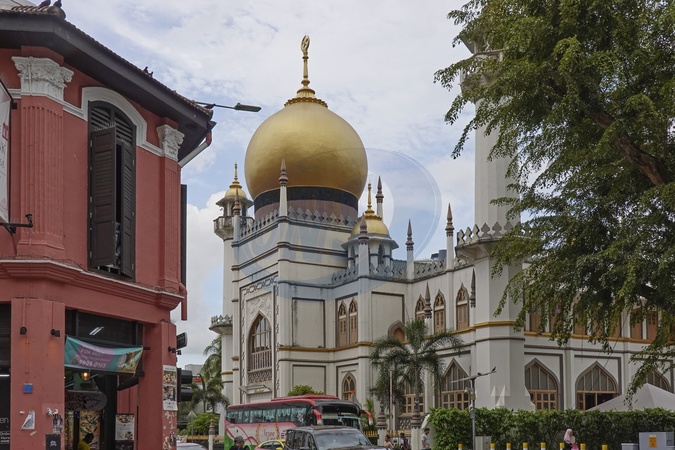 Singapore, Sultan Mosque or Masjid Sultan is a mosque located at Muscat Street and North Bridge Road within the Kampong Glam precinct of the district of Rochor in Singapore. It was named after Sultan Hussain Shah. The mosque was inaugurated on 27 December 1936. In 1975, it was designated a national monument., Credit:Fabio Mazzarella / Avalon