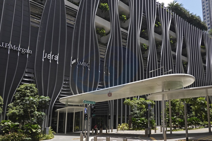 Singapore, Facade of the 51 storey sustainably designed CapitaSpring building, 88 Market Street, Credit:Fabio Mazzarella / Avalon
