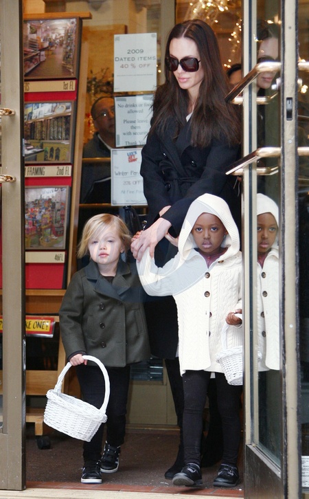 Angelina Jolie z corkami Zahara i Shiloh Nouvel na zakupach Lee's Art Shop, Nowy Jork