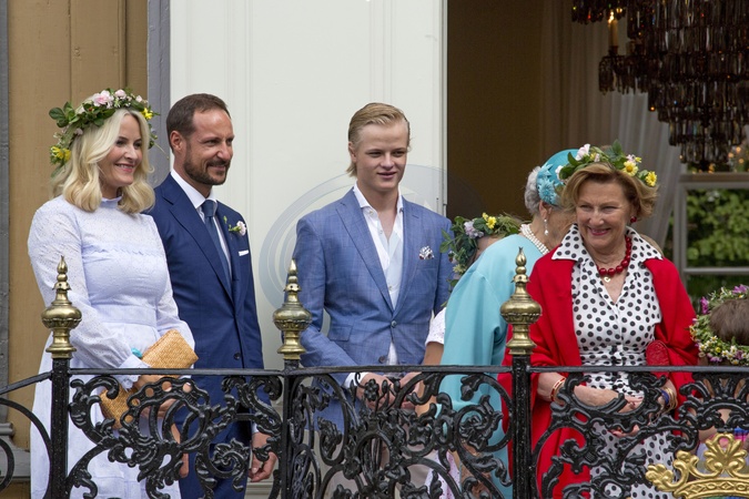 Info - Norvège: Marius Borg Hoiby, le fils de la princesse Mette-Marit soupçonné de 23 infractions dont trois viols - La princesse Mette Marit, le prince Haakon, Marius Borg Hoiby , la princesse Astrid, la reine Sonja - La famille royale de Norvège lors de la garden party du jubilé des 25 ans de règne du roi Harald de Norvège à Trondheim le 23 juin 2016. King Harald celebrates his 25 year jubilee as King of Norway in with a visit with King's Ship Norge and other members of the Royal Family in Trondheim