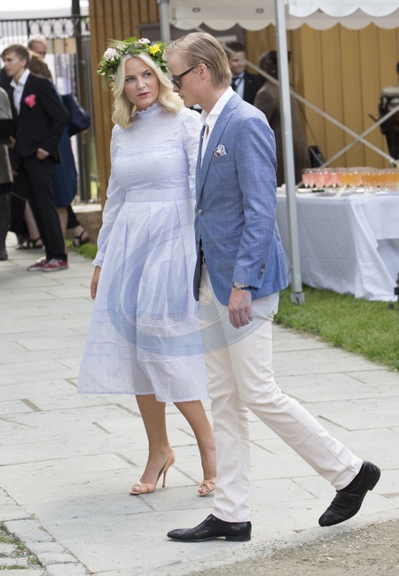 Info - Norvège: Marius Borg Hoiby, le fils de la princesse Mette-Marit soupçonné de 23 infractions dont trois viols - La princesse Mette Marit, Marius Borg Hoiby - La famille royale de Norvège lors de la garden party du jubilé des 25 ans de règne du roi Harald de Norvège à Trondheim le 23 juin 2016. King Harald celebrates his 25 year jubilee as King of Norway in with a visit with King's Ship Norge and other members of the Royal Family in Trondheim