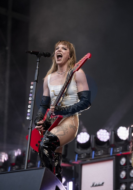 Halestorm performing live at the London Stadium, London 28 June 2028Lzzy Hale ,lead singer, rhythm guitarHalestorm is an American rock band that founded in '97. The group's self-titled debut album was released in '09 through Atlantic Records. To date they've released five studio albums, with a sixth "Everest" due later this year. Halestorm is known for their constant touring, often performing as many as 250 shows a year., Credit:Dafydd Owen / Avalon