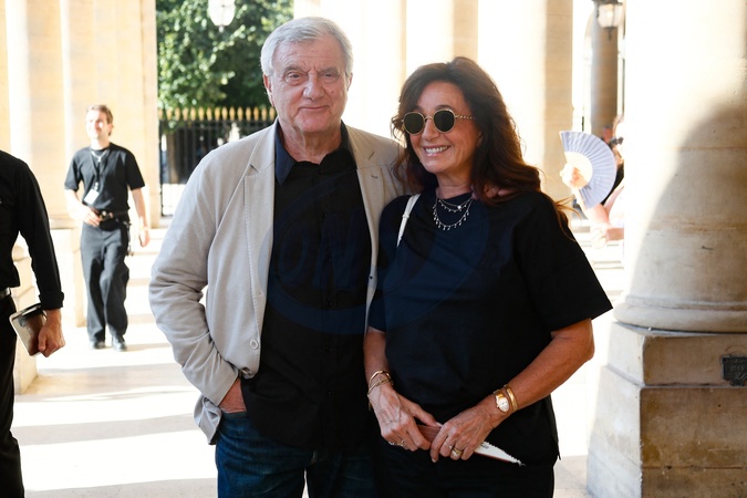 Sidney Toledano et sa femme Katia Assous - Prix ANDAM dans les jardins du Palais Royal à Paris, France, le 30 juin 2025. © Christophe Clovis / Bestimage Andam awards evening in the gardens of the royal palace in Paris on june 30 2025