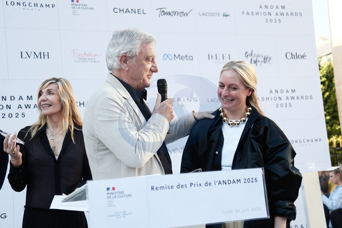 Sidney Toledano, Meryll Rogge (grand Prix Andam 2025) - Prix ANDAM dans les jardins du Palais Royal à Paris, France, le 30 juin 2025. © Christophe Clovis / Bestimage Andam awards evening in the gardens of the royal palace in Paris on june 30 2025