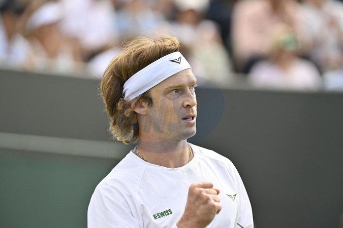 Andrey Rublev - Russie - lors du cinquième jour des championnats de tennis de Wimbledon au All England Lawn Tennis and Croquet Club à Londres, Royaume Uni, le 4 juillet 2025. © Chryslene Caillaud/Psnewz/Bestimage Day 5 of The Championships Wimbledon 2025 at All England Lawn Tennis and Croquet Club on July 4, 2025 in London, England