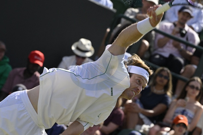 Andrey Rublev - Russie - lors du cinquième jour des championnats de tennis de Wimbledon au All England Lawn Tennis and Croquet Club à Londres, Royaume Uni, le 4 juillet 2025. © Chryslene Caillaud/Psnewz/Bestimage Day 5 of The Championships Wimbledon 2025 at All England Lawn Tennis and Croquet Club on July 4, 2025 in London, England