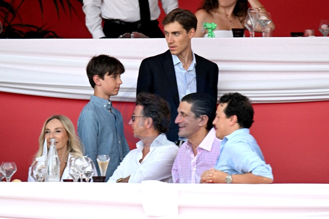 No Tabloïds - Raphael Elmaleh et Ben-Sylvester Strautmann lors de la 2eme journée du Jumping International de Monte-Carlo, le 4 juillet 2024. La compétition se déroule sur le port Hercule à Monaco, du 3 juillet au 5 juillet. La princesse Caroline, sa fille Charlotte et Diane Fissore, ont remis le 1er prix de la Longines Pro-Am Cup au profit de l'AMADE et recupéré un chèque de 20000 Euros pour l'associarion fondée en 1963 par la princesse Grace de Monaco en faveur de la protection et de l'épanouissement des enfants. C'es le binôme composé de Giacomo Paneraj (MON) et Felipe Coutinho Mendonca Nagata (BRE), pour la Team Paneraj & Partner Estate qui ont pris la première place. © Bruno Bebert/Bestimage No Tabloïds - No Mail Online - Only for OK, Hello, Grazia in UK - Second day of the Monte Carlo International Jumping on July 4, 2025.