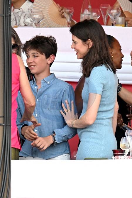 No Tabloïds - Charlotte Casiraghi, son fils, né de son union avec Gad Elmaleh, Raphael, lors deà la 2eme journée du Jumping International de Monte-Carlo, le 4 juillet 2024. La compétition se déroule sur le port Hercule à Monaco, du 3 juillet au 5 juillet. La princesse Caroline, sa fille Charlotte et Diane Fissore, ont remis le 1er prix de la Longines Pro-Am Cup au profit de l'AMADE et recupéré un chèque de 20000 Euros pour l'associarion fondée en 1963 par la princesse Grace de Monaco en faveur de la protection et de l'épanouissement des enfants. C'es le binôme composé de Giacomo Paneraj (MON) et Felipe Coutinho Mendonca Nagata (BRE), pour la Team Paneraj & Partner Estate qui ont pris la première place. © Bruno Bebert/Bestimage No Tabloïds - No Mail Online - Only for OK, Hello, Grazia in UK - Second day of the Monte Carlo International Jumping on July 4, 2025.