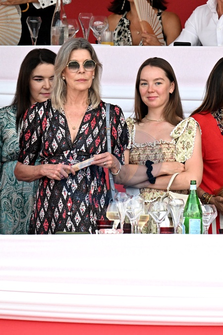 No Tabloïds - La princesse Caroline de Hanovre, sa fille Charlotte Casiraghi, son fils, né de son union avec Gad Elmaleh, Raphael, la princesse Alexandra de Hanovre, son fiancé Ben-Sylvester Strautmann, Melanie de Massy et Diane Fissore, la présidente du jumping et de la Fédération monégasque d'équitation, ont assisté à la 2eme journée du Jumping International de Monte-Carlo, le 4 juillet 2024. La compétition se déroule sur le port Hercule à Monaco, du 3 juillet au 5 juillet. La princesse Caroline, sa fille Charlotte et Diane Fissore, ont remis le 1er prix de la Longines Pro-Am Cup au profit de l'AMADE et recupéré un chèque de 20000 Euros pour l'associarion fondée en 1963 par la princesse Grace de Monaco en faveur de la protection et de l'épanouissement des enfants. C'es le binôme composé de Giacomo Paneraj (MON) et Felipe Coutinho Mendonca Nagata (BRE), pour la Team Paneraj & Partner Estate qui ont pris la première place. © Bruno Bebert/Bestimage No Tabloïds - No Mail Online - Only for OK, Hello, Grazia in UK - Second day of the Monte Carlo International Jumping on July 4, 2025.