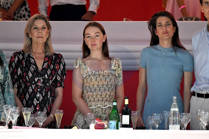 No Tabloïds - La princesse Caroline de Hanovre, sa fille Charlotte Casiraghi, son fils, né de son union avec Gad Elmaleh, Raphael, la princesse Alexandra de Hanovre, son fiancé Ben-Sylvester Strautmann, Melanie de Massy et Diane Fissore, la présidente du jumping et de la Fédération monégasque d'équitation, ont assisté à la 2eme journée du Jumping International de Monte-Carlo, le 4 juillet 2024. La compétition se déroule sur le port Hercule à Monaco, du 3 juillet au 5 juillet. La princesse Caroline, sa fille Charlotte et Diane Fissore, ont remis le 1er prix de la Longines Pro-Am Cup au profit de l'AMADE et recupéré un chèque de 20000 Euros pour l'associarion fondée en 1963 par la princesse Grace de Monaco en faveur de la protection et de l'épanouissement des enfants. C'es le binôme composé de Giacomo Paneraj (MON) et Felipe Coutinho Mendonca Nagata (BRE), pour la Team Paneraj & Partner Estate qui ont pris la première place. © Bruno Bebert/Bestimage No Tabloïds - No Mail Online - Only for OK, Hello, Grazia in UK - Second day of the Monte Carlo International Jumping on July 4, 2025.