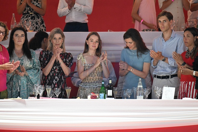 No Tabloïds - La princesse Caroline de Hanovre, sa fille Charlotte Casiraghi, son fils, né de son union avec Gad Elmaleh, Raphael, la princesse Alexandra de Hanovre, son fiancé Ben-Sylvester Strautmann, Melanie de Massy et Diane Fissore, la présidente du jumping et de la Fédération monégasque d'équitation, ont assisté à la 2eme journée du Jumping International de Monte-Carlo, le 4 juillet 2024. La compétition se déroule sur le port Hercule à Monaco, du 3 juillet au 5 juillet. La princesse Caroline, sa fille Charlotte et Diane Fissore, ont remis le 1er prix de la Longines Pro-Am Cup au profit de l'AMADE et recupéré un chèque de 20000 Euros pour l'associarion fondée en 1963 par la princesse Grace de Monaco en faveur de la protection et de l'épanouissement des enfants. C'es le binôme composé de Giacomo Paneraj (MON) et Felipe Coutinho Mendonca Nagata (BRE), pour la Team Paneraj & Partner Estate qui ont pris la première place. © Bruno Bebert/Bestimage No Tabloïds - No Mail Online - Only for OK, Hello, Grazia in UK - Second day of the Monte Carlo International Jumping on July 4, 2025.