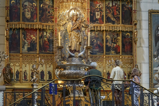 Spain, Madrid,The Cathedral of Saint Mary the Royal of the Almudena (Santa Maria la Real de La Almudena), commonly known as the Almudena Cathedral, built between 1883 and 1984. Pictured: The Neo-Romanesque crypt houses a 16th-century image of the Virgen de la Almudena.Photo Fabio Mazzarella/Sintesi *** Local Caption ***, Credit:Fabio Mazzarella / Avalon